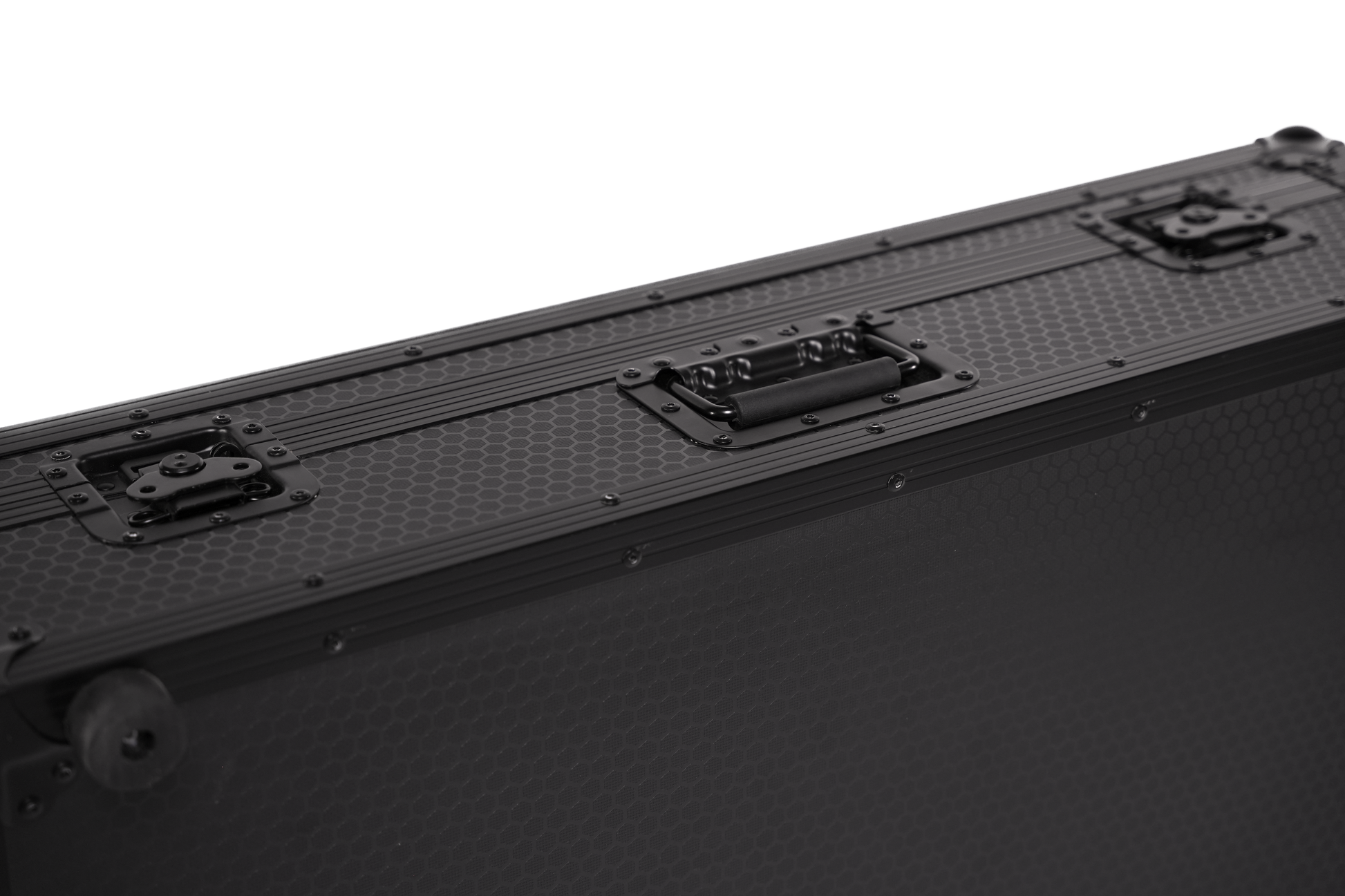 Our improved Blackout Pedalboard Flight Case 32+ was designed to protect your pedalboard and all your pedals inside against the toughest situations. We use top grade hardware and latching, reinforce the edges with black anodized extrusion, and make it overbuilt like a tank with all 3/8" plywood construction coated in a black hex pattern for stunning looks.