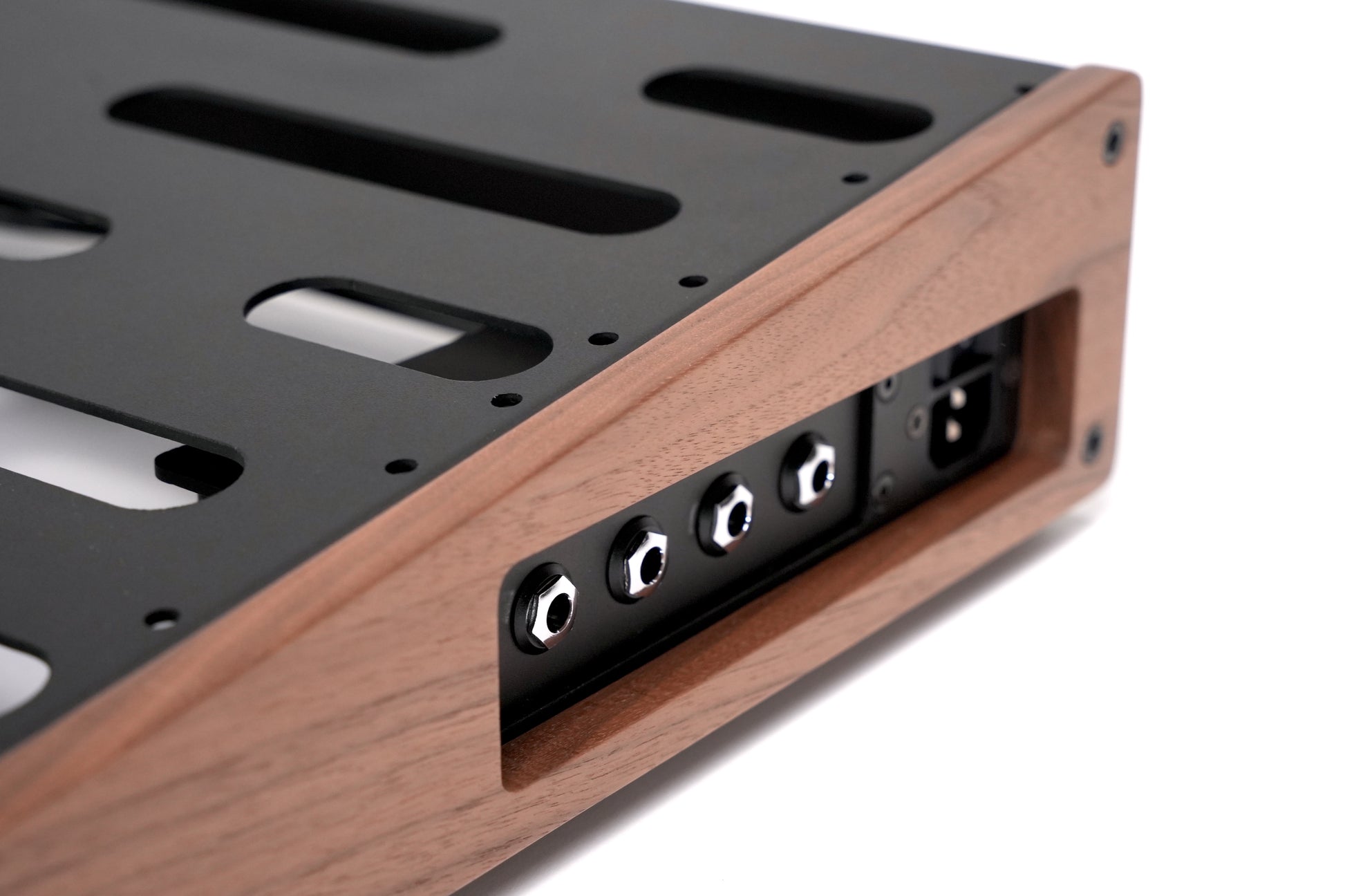 With the original release of Elevation we began to utilize pre-powder coated pedal enclosures as a clean solution to house In/Out jacks on the underside of the board. This worked well and eventually was streamlined into a modular enclosure used on Elevation V2 and able to fit to the underside of our Aero boards as well. However, it was perhaps the Patch Bay that has been the catalyst to inspire the change to our whole V3 line of Pedalboards.